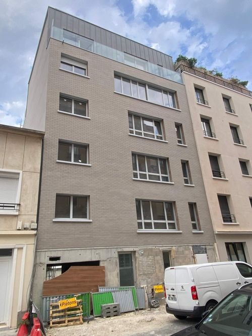 Le tissu urbain du quartier est dense et l’utilisation de l’ensemble de la parcelle a permis de réaliser 8 logements et 1 local commercial au RDC, ainsi qu’un parking sous-terrain accessible par un élévateur. Le volume et l’aspect de la construction sont cohérents avec ceux de l’environnement immédiat tout en étant marquée par une écriture contemporaine.